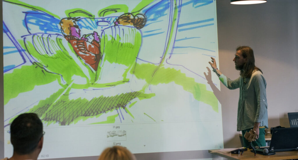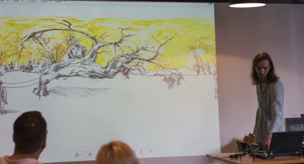 Next we had a spontaneous speaker Filipp Keks, who shared his thought about game design, programming and life in general. Can thinking like a painter benefit us all? Yes, yes it can:
